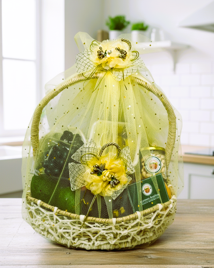 This elegant basket brings together the best from orchards around the world — apricots, cherries, mangosteens, golden kiwis, avocados, grapes, mandarins, dragon fruits, and more — accompanied by six artisanal dry fruit jars including almonds, cashews, pistachios, and sun-dried favorites.